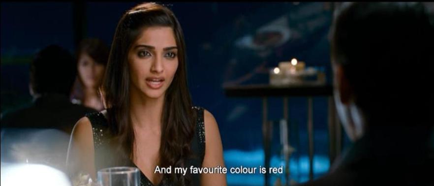 Next is Sonam Kapoor as Simran. And don't try making a joke about her filmi name or she'll cut you. Actually no, she won't cut you, that'd be way too interesting and edgy. She'll just sort of glare at you and roll her eyes a bit.